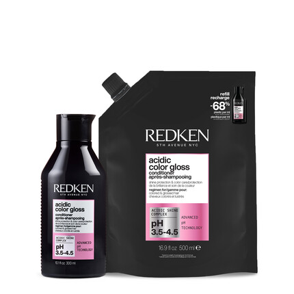 Redken’s Acidic Color Gloss regimen provides high shine, color vibrancy and deep hydration.