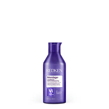 Color Extend Blondage Conditioner is a violet-pigment depositing conditioner that protects and tones for blonde and highlighted hair that are experiencing warmth and brass. Formulated with Citric Acid to strengthen and repair blonde hair while pure violet (purple) pigments remove unwanted brassiness to cool hair’s warm for a brighter, truer blonde hair color. This product is recommended for hair that contains orange or yellow undertones, and for those who experience persistent brassiness.