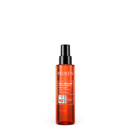 Prescribed for frizz protection, the Redken Leave-in hair smoothing serum moisturizes and detangles hair while providing smoothness, manageability, and shine for medium to maximum frizz control. Experience up to 82% less frizz in 24 hours after one use of Frizz Dismiss Shampoo, Conditioner and FPF 30 Instant Deflate.