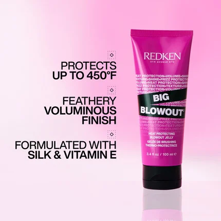 Redken’s Big Blowout is a volumizing blowout gel that melts into hair to provide a voluminous bombshell blowout to all hair types and textures. Formulated with silk and Vitamin E, this heat-protectant gel provides anti-frizz and anti-humidity benefits to make your blowout last.
