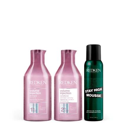 Redken’s Volume Injection Conditioner is a lightweight cream formulation with Redken’s Bodifying Complex with the power of Filloxane, a bodifying agent that adds thickness to hair. Unlike other, thicker, cream formulations that weigh down and create oilier hair, Volume Injection creates instant volume with root lifting ingredients while leaving hair feeling refreshed, light and with movement. Volume Injection is prescribed for fine hair or for any client looking to add more body to their hair.
